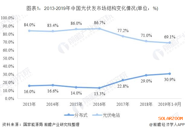 我國光伏發(fā)電發(fā)展之初,各地大力發(fā)展光伏電站,2013年,光伏電站累計(jì)裝機(jī)容量占光伏發(fā)電裝機(jī)容量的84%,處于絕對領(lǐng)先地位。